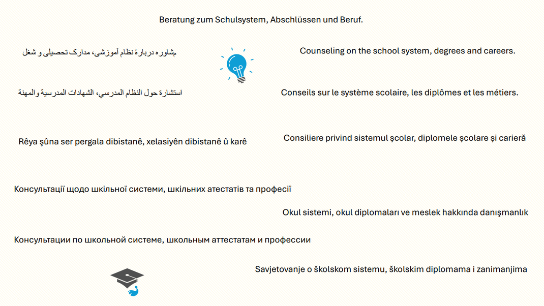 Termine sind von Dienstag bis Donnerstag vormittags in der Schule oder nachmittags im Arbeitskreis Asyl (Clemensstraße 6) möglich.